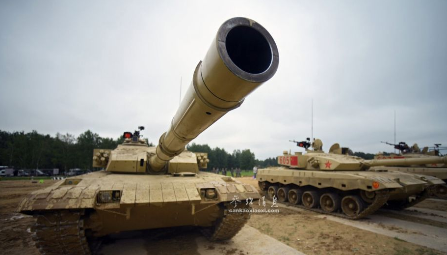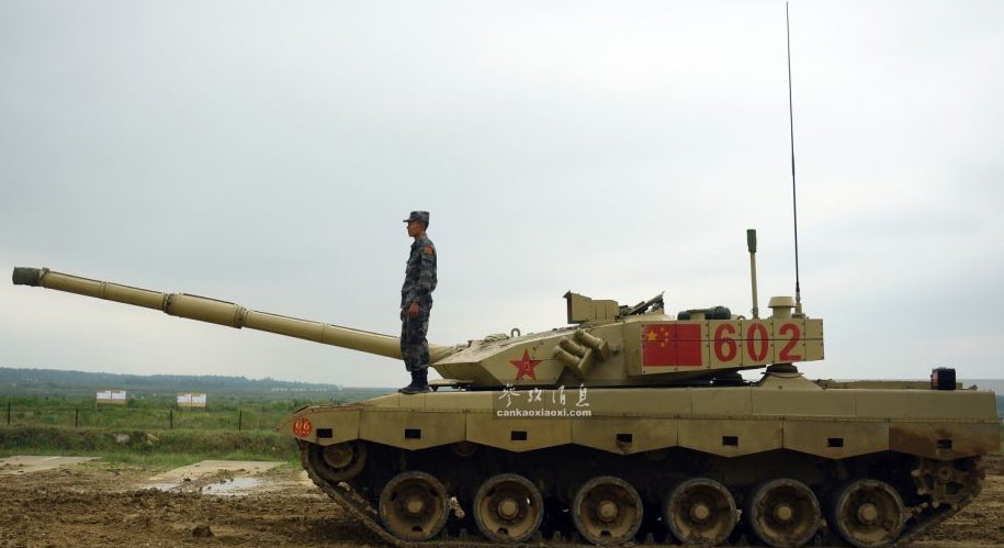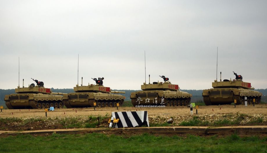 俄軍相關(guān)人士指出,中國隊是此次比賽中的“奪冠熱門”?!眰?cè)面拍攝的602號96B坦克。96B配備有一門125毫米滑膛炮,具備發(fā)射炮射反坦克導彈能力。