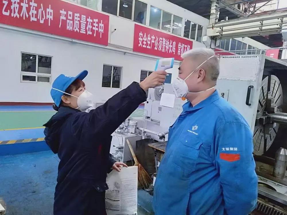 北重集團為在崗工作人員準備了洗手液、口罩、噴壺等消毒防護器材,對進入廠房人員嚴格登記和測量體溫,對工作人員一日四次檢測體溫并進行記錄,在做好疫情防控的同時保證生產(chǎn)。