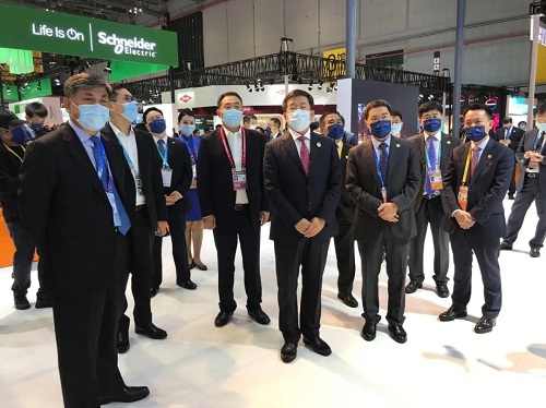 商務(wù)部副部長(zhǎng)任鴻斌參觀集團(tuán)公司組展的技術(shù)裝備展區(qū)
