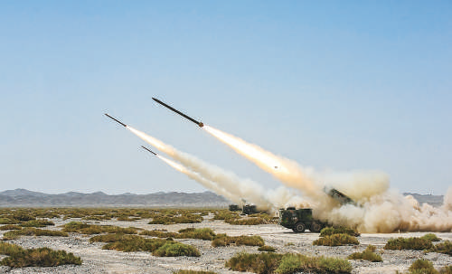 ▲某集團(tuán)軍炮兵旅遠(yuǎn)火營使用遠(yuǎn)程多管火箭炮進(jìn)行實戰(zhàn)化訓(xùn)練