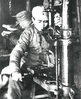 “炮彈大王”甄榮典,是八路軍黃崖洞兵工廠的一名水車動力車工,從事炮彈生產(chǎn)最吃力的工種,別的工人都因體力消耗支撐不住,不到兩三個月就需要輪換一次,但甄榮典深知前線的需要,堅持在水力輪帶旁一干就是5年。別人一天車五六十發(fā)炮彈,他能車100發(fā)以上;別人車到100發(fā),他又增加到150發(fā),最終創(chuàng)造了日車炮彈外圓480發(fā)的驚人紀(jì)錄。