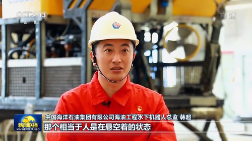 中國海洋石油集團有限公司海油工程水下機器人總監(jiān) 韓超:你的手腳要并用,然后你要在抓的同時,后面你不要忘了還有一條臍帶纜是連著你的。你再稍微一用力,那通訊要不然斷了,要不然就絕緣報警。