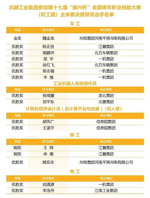 喜報丨兵器工業(yè)集團青年職工在第十七屆“振興杯”全國青年職業(yè)技能大賽(職工組)決賽中勇奪金獎 |