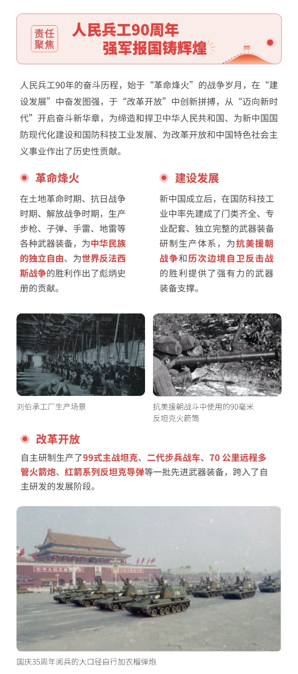 近日,兵器工業(yè)集團正式發(fā)布第十三份年度社會責(zé)任報告——《中國兵器工業(yè)集團有限公司2021年社會責(zé)任報告》,以“用心守護和平、用力爭創(chuàng)一流、用情溫暖社會”為主題,從恪守強軍首責(zé)、服務(wù)經(jīng)濟建設(shè)、共創(chuàng)美好生活三個維度,向社會全面披露2021年度履責(zé)實踐和履責(zé)業(yè)績?!秷蟾妗愤B續(xù)第三年獲得中國企業(yè)社會責(zé)任報告評級專家委員會“五星佳”評級,兵器工業(yè)集團成為軍工行業(yè)唯一連續(xù)11年獲得五星及五星佳最高評級的企業(yè)。 一圖解碼兵器工業(yè)的“責(zé)任力量” |