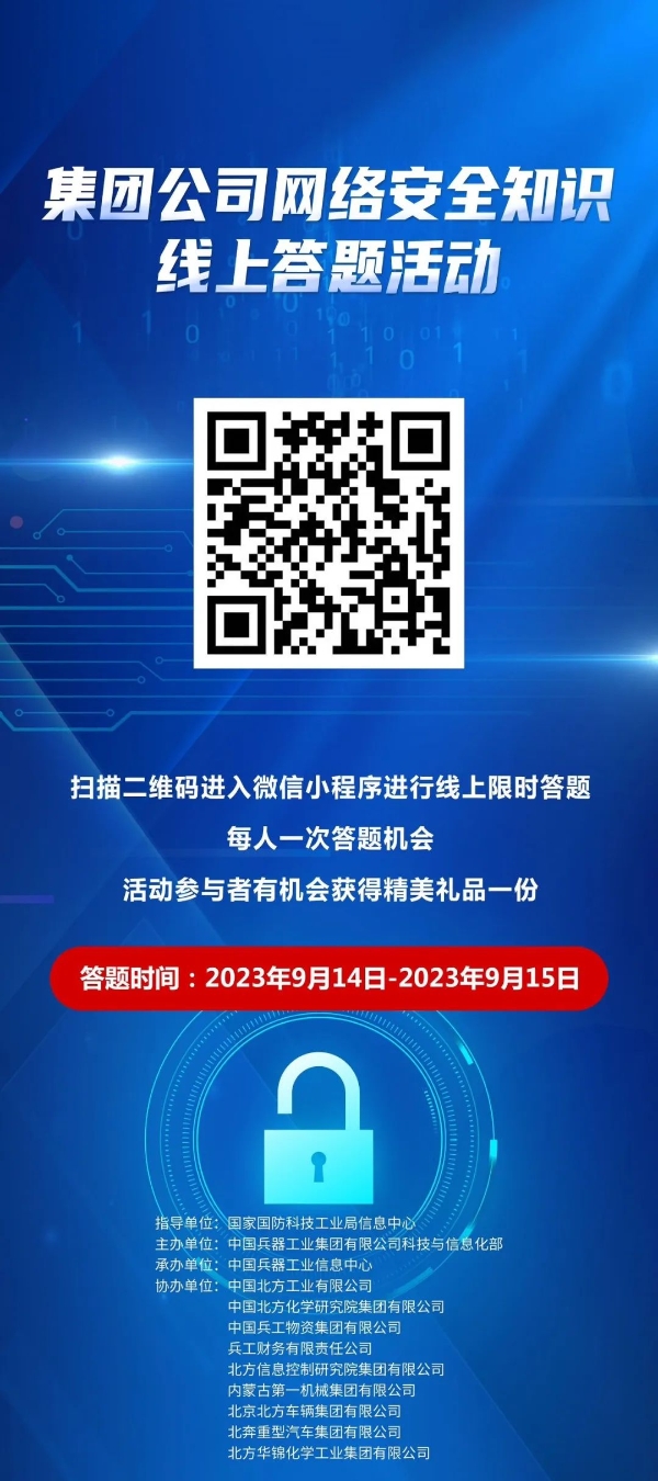 9月11日至17日,中國(guó)兵器工業(yè)集團(tuán)有限公司以“數(shù)字創(chuàng)新 智御未來(lái)”為主題,圍繞集團(tuán)公司“1+5”戰(zhàn)略和“雙十”規(guī)劃,組織開(kāi)展集團(tuán)公司網(wǎng)絡(luò)安全宣傳周系列活動(dòng)。 9月11日,集團(tuán)公司科技與信息化部組織在京單位召開(kāi)網(wǎng)絡(luò)安全宣講與經(jīng)驗(yàn)交流活動(dòng),邀請(qǐng)公安部第一研究所網(wǎng)絡(luò)安全專家針對(duì)網(wǎng)絡(luò)安全形勢(shì)和個(gè)人防護(hù)技能以及網(wǎng)絡(luò)安全等級(jí)保護(hù)主要工作環(huán)節(jié)和標(biāo)準(zhǔn)應(yīng)用作專題講座,會(huì)上北方公司、物資集團(tuán)、財(cái)務(wù)公司、北方車輛集團(tuán)、北奔重汽進(jìn)行了工作經(jīng)驗(yàn)分享。