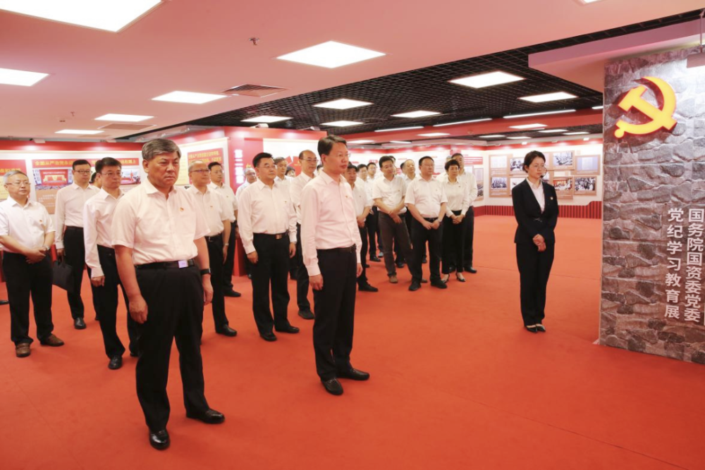黨組同志認(rèn)真聆聽(tīng)講解,集體參觀了“政治鑄魂——習(xí)近平總書(shū)記重要論述”“紀(jì)法樹(shù)威——黨規(guī)黨紀(jì)相關(guān)要求”“傳承增信——黨的優(yōu)良傳統(tǒng)”“嚴(yán)管促行——國(guó)務(wù)院國(guó)資委黨委紀(jì)律建設(shè)成效”“警示立戒——反面典型案例”“實(shí)干建功——工作展望”6個(gè)篇章,通過(guò)觀看圖文、視頻等形式多樣的展品展示,進(jìn)一步學(xué)習(xí)領(lǐng)會(huì)習(xí)近平總書(shū)記關(guān)于國(guó)資央企的重要指示批示精神和黨的紀(jì)律建設(shè)的重要論述,學(xué)習(xí)把握《中國(guó)共產(chǎn)黨紀(jì)律處分條例》新增、修訂內(nèi)容,全面了解國(guó)務(wù)院國(guó)資委黨委強(qiáng)化政治引領(lǐng)、加強(qiáng)政治監(jiān)督、深化紀(jì)律建設(shè)、抓實(shí)巡視工作等方面的做法舉措,集中觀看近年來(lái)國(guó)資央企發(fā)生的具有代表性的違規(guī)違紀(jì)案例,深刻領(lǐng)悟以習(xí)近平同志為核心的黨中央堅(jiān)持黨要管黨、全面從嚴(yán)治黨取得的歷史性成就,全面感受?chē)?guó)務(wù)院國(guó)資委黨委全面從嚴(yán)治黨取得的重要成果。